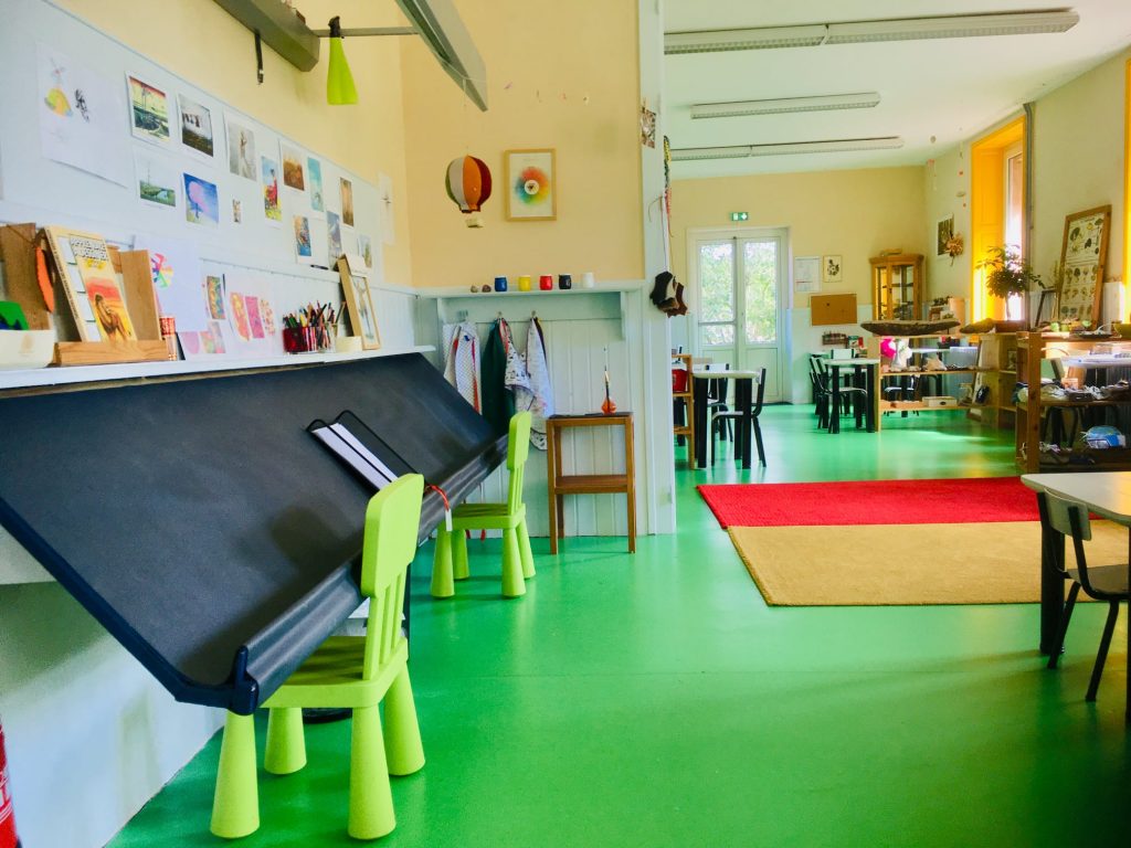 Vi håller för närvarande på att omvandla skolan, och därför presenterar vi här de klassrumsmiljöer som inspirerar oss, bland annat fotografier från Montessoriskolan "les souris vertes" i Sénones (88100). Våra egna bilder kommer att läggas upp när arbetet är klart.